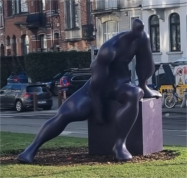 L'oeuvre "Tom" vue de biais. Installée depuis quelques mois.
