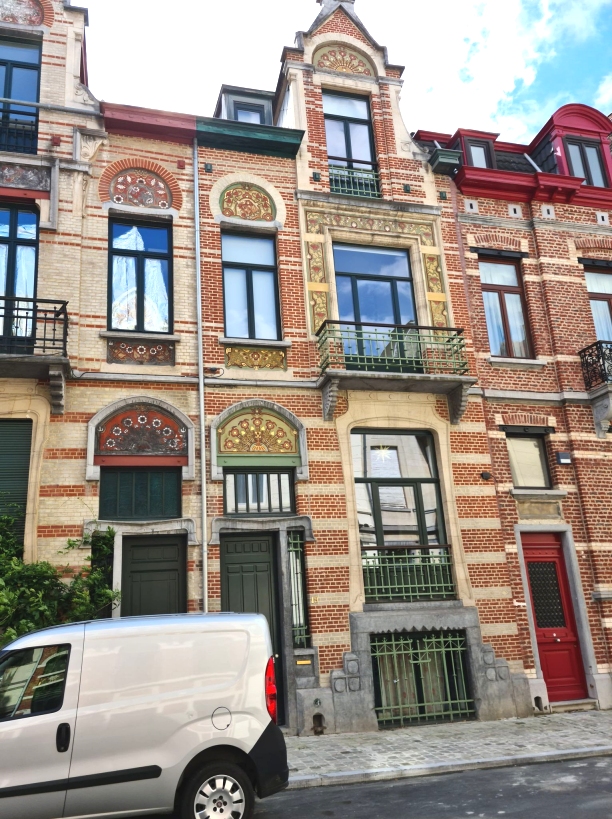 Ensemble de deux maisons analogues, d'inspiration Art nouveau, conçu en 1899 par l'architecte Joseph Baudoin, qui signe entre les deux portes d'entrée.
