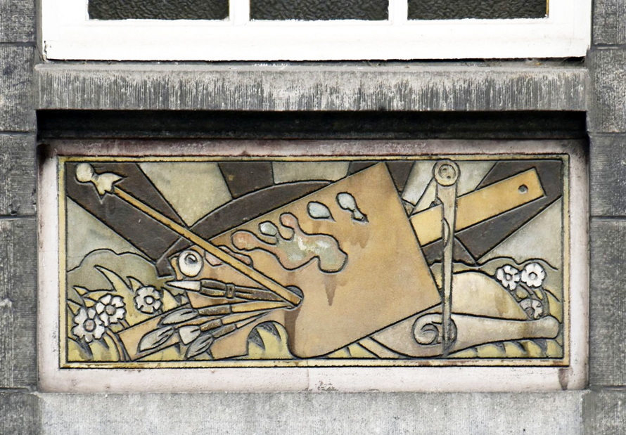 L'entrée surmontée d'un sgraffite.