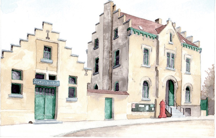 Ancienne maison communale (qui deviendra successivement bureau de police en 1949 avant de faire place à un bâtiment moderne abritant une crèche) et bureau de police.